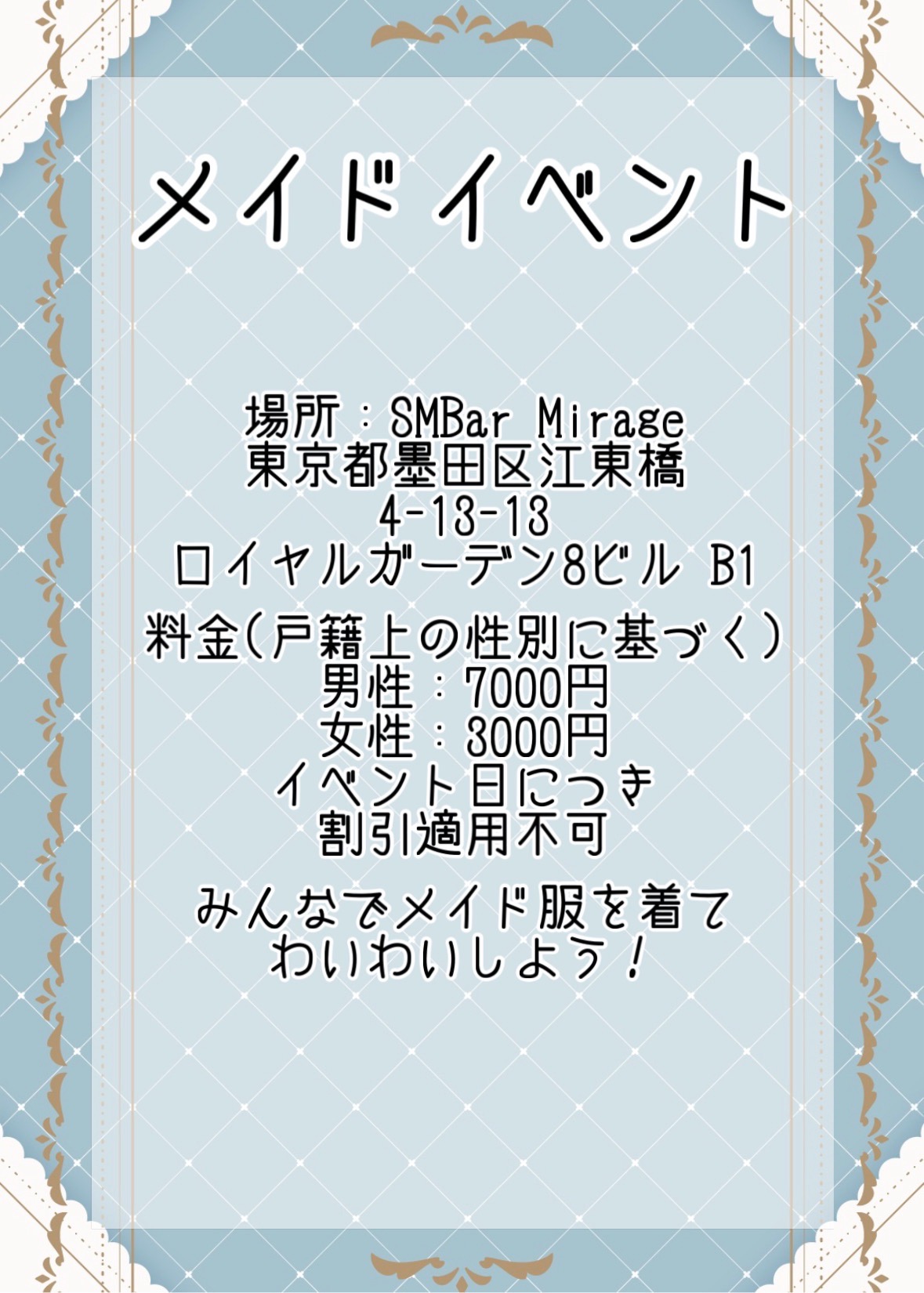 メイドさんを見たい人も、メイドさんになりたい人も、執事になりたい人も、さぁ、ミラージュに全員集合だ!