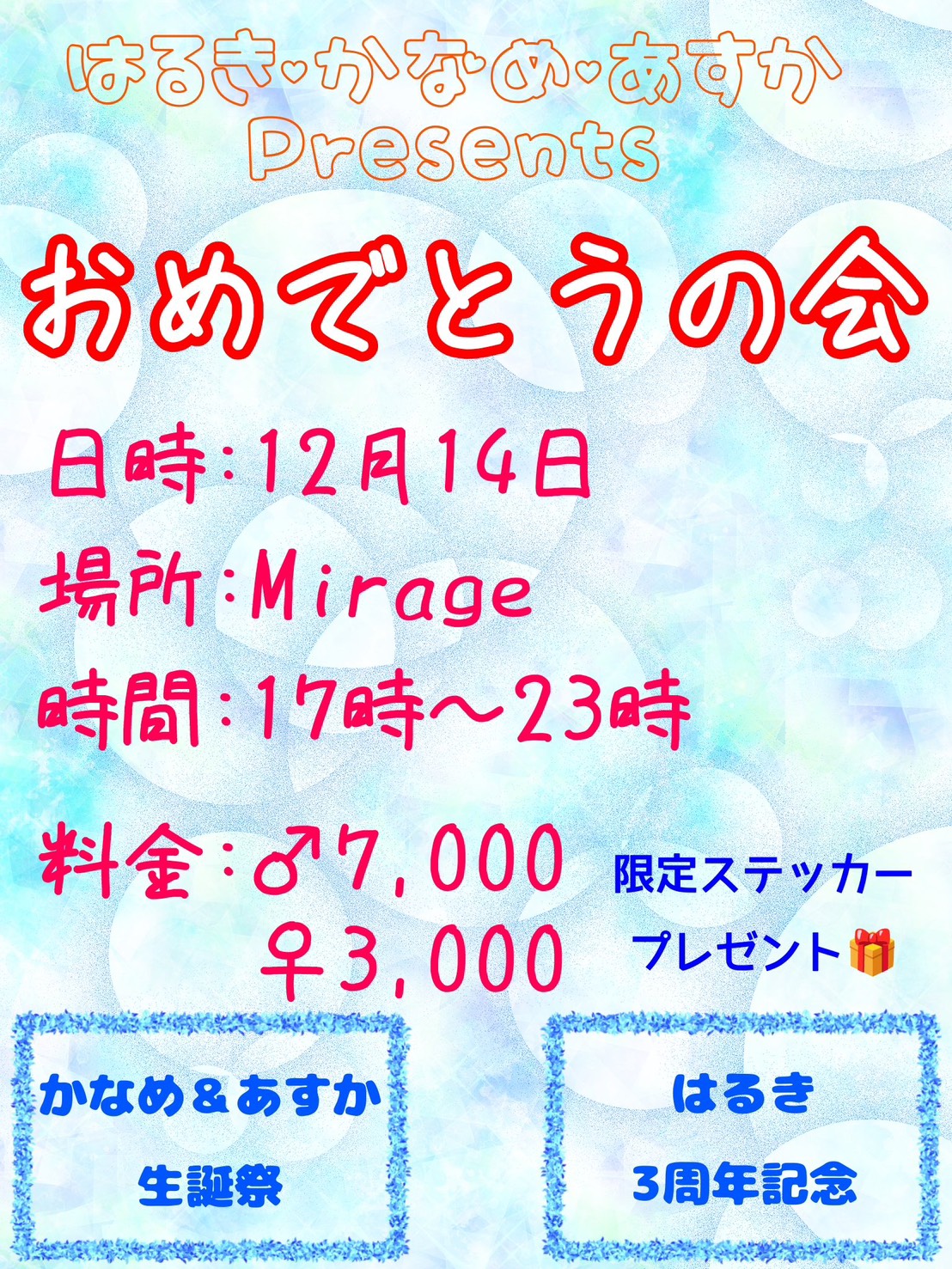 2025/12/14(日)夜 あすか&はるき&かなめ『おめでとうの会』